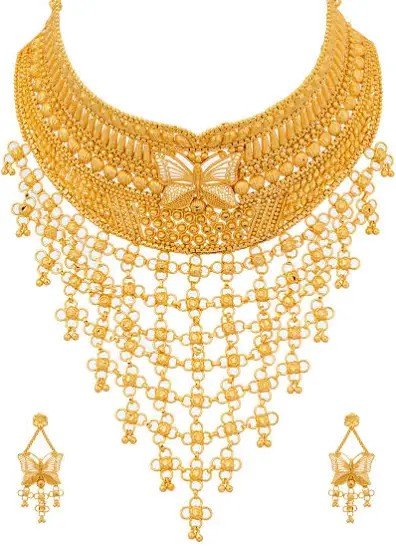 The Gold-plated Gold Jewel Set is crafted to give you the richness of gold with a modern touch of style. Designed to complement both traditional and contemporary outfits, this set brings out your elegance on any occasion. Its fine finish and radiant shine make it a perfect choice for weddings, parties, and festive celebrations, helping you feel confident and beautiful every time you wear it.