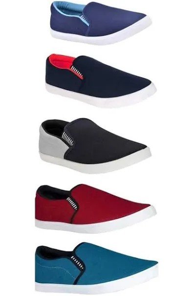This convenient 5-Pair Combo Pack of Casual Slip-On Sneakers is the ideal choice for maximizing versatility and comfort in your everyday wardrobe. Each shoe features a classic, low-profile design crafted from a soft, breathable fabric and set atop a clean white rubber sole. The ultimate feature is the slip-on construction, which allows for quick, effortless wear without the hassle of laces. The collection offers a spectrum of colors, including multiple shades of blue, red, and grey, allowing you to easily coordinate your footwear with any casual outfit. These lightweight sneakers are perfect for daily outings, college wear, or relaxed travel.